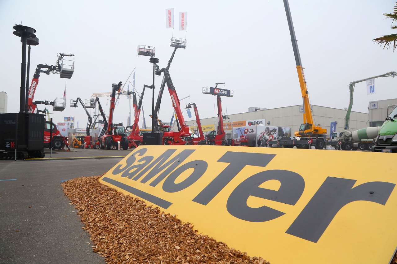 Telescopic handlers and aerial platforms dominate the outdoor areas of SaMoTer